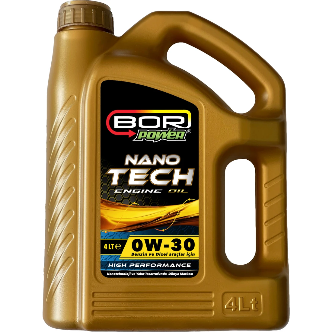 BORPOWER Nanotech 0W-30 araç üreticileri tarafından belirlenen yüksek standartları karşılamak üzere geliştirilmiş tam sentetik motor yağıdır. Kritik motor parçaları üzerinde yüksek koruma-performans ve uzun yağ değişim aralıkları boyunca üstün dayanıklılık sağlamak üzere üretilmiştir. Özellikle en soğuk ortamlardaki ilk çalıştırmalarda benzersiz koruma sağlayacak şekilde tasarlanmıştır. Sentetik teknolojisi ile standart yağlara göre üstün performans sağlar. Dizel partikül filtreleri içinde partikül birikiminin azalmasını sağlar. Tortu ve çamur oluşumunu önlemeye yardımcı olarak motoru temiz tutar ve motorun ömrünü uzatır. Daha uzun yağ değişim aralığı sağlayarak yağın daha uzun süre kullanılmasını sağlar. Her türlü sürüş koşulu ve sıcaklıkta eşsiz koruma sağlar. Soğuk havalarda hızlı başlatma ve hızlı motor aşınması koruması için mükemmel düşük sıcaklık kabiliyetleri sunar. Yüksek basınç, sıcaklık ve zorlu şartlar altında bile sorunsuz performans sağlar. Yakıt ekonomisine yardımcı olur.